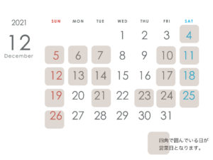 12月は、4日金曜日より営業