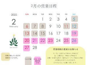 2月は、営業時間を少し変更させていただきます。