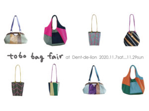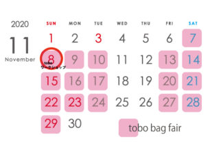 11月は、待ちに待った! tobo bag fair 2年に1度のお楽しみ! 前回は、春夏でしたね。今回は、20…