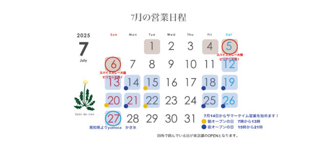 最終日 7月27日日曜日は、高知県よりyumoca のかき氷が食べれるスペシャルDayの為を営業時間は、11時から18時までとなります!
