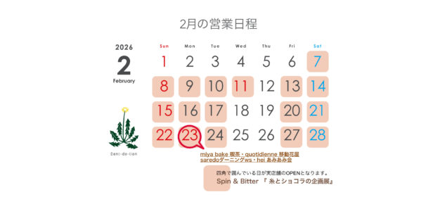 2月の営業日程