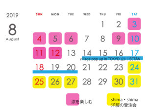 関東方面のみなさま! この夏も東京に!行きます! 8.14(wed)---8.20(tue) village pop up…